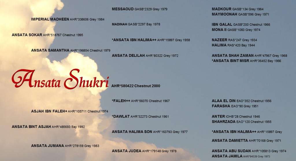 generation pure in the strain Dahman Shawan, tail female to Halter Champion Ansata Jamila tracing to Farida. Shukri’s foals are