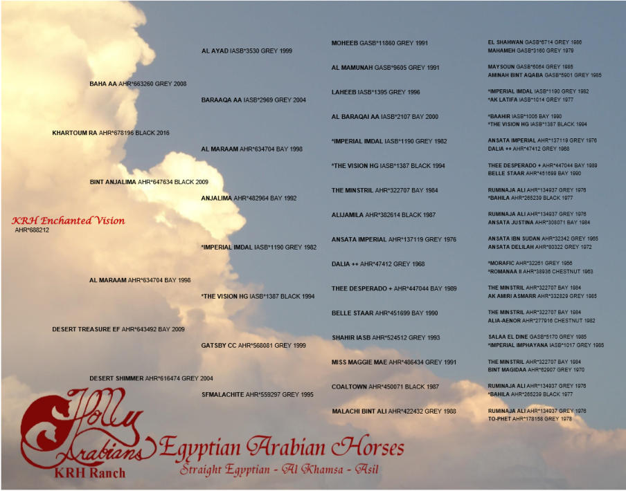 Holly Arabians Breeding Classically Beautiful Straight Egyptian, Al Khamsa, Asil, and Rare Black Egyptian Arabian Horses since 1982.