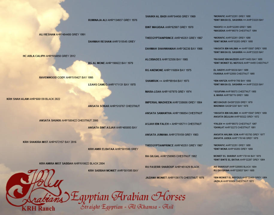 Holly Arabians Breeding Classically Beautiful Straight Egyptian, Al Khamsa, Asil, and Rare Black Egyptian Arabian Horses since 1982.